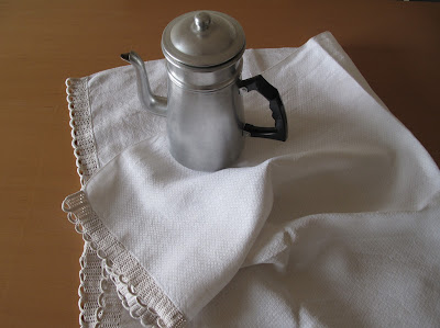 Esta pequena toalha tem um pouco mais de história familiar: apliquei a renda num pano da minha bisavó materna.